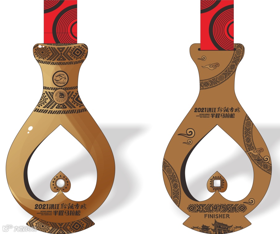 其中,半程马拉松的完赛奖牌采用古青铜色,复古与时尚的结合,更是彰显了21.0975公里的体育魅力。而十公里的完赛奖牌则采取古红铜色,将洪江千年古城浓厚的文化韵味发挥到极致。