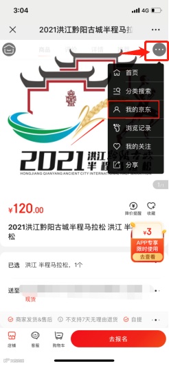 第一步:重新打开报名链接,点击右上角“…”,选择“我的京东”