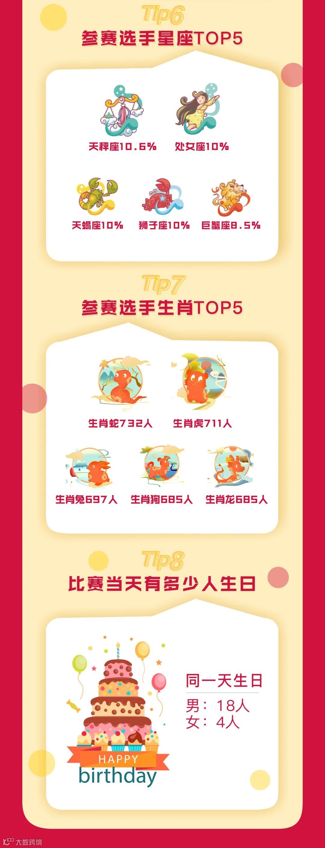 本次报名数据主要是从“参赛选手的性别、地理分布、年龄段、星座、生肖”五大维度,应用大数据分析处理技术得出今年洪马的报名数据。