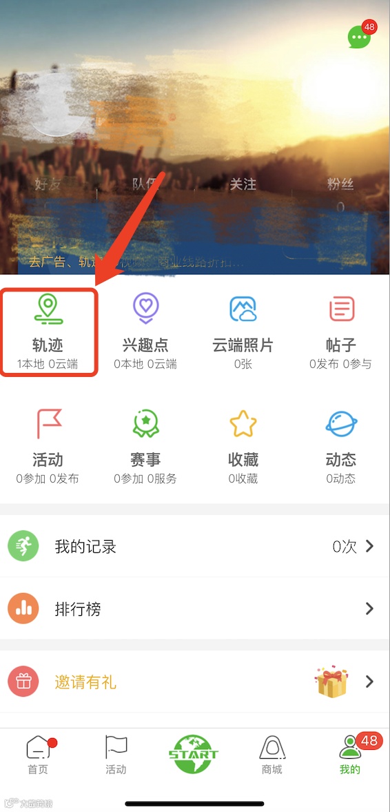 2、轨迹下载后,在App内可以直接用于导航。查看轨迹:“我的”—“轨迹”—“导入的轨迹”,然后点击赛事轨迹查看。