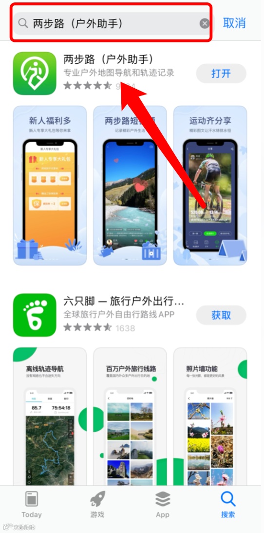 手机商城搜索“两步路(户外助手)”App,点击下载;