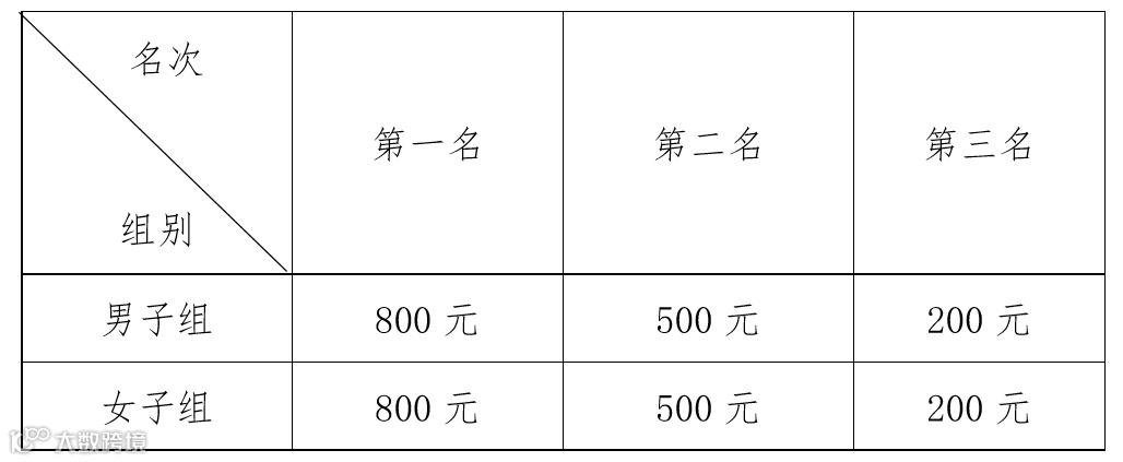 1. 获得男、女前三名组的参赛者,组委会颁发奖金。