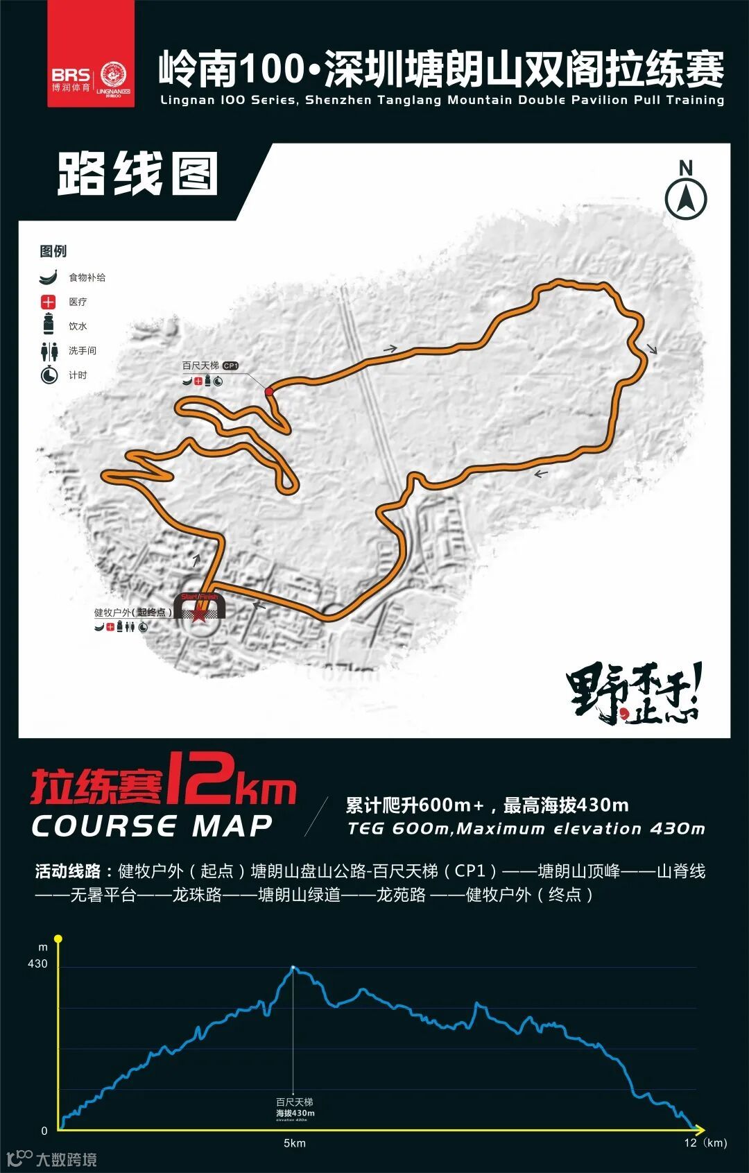 长度12KM,累计爬升600m+,最高海拔430m,关门时间3小时。
