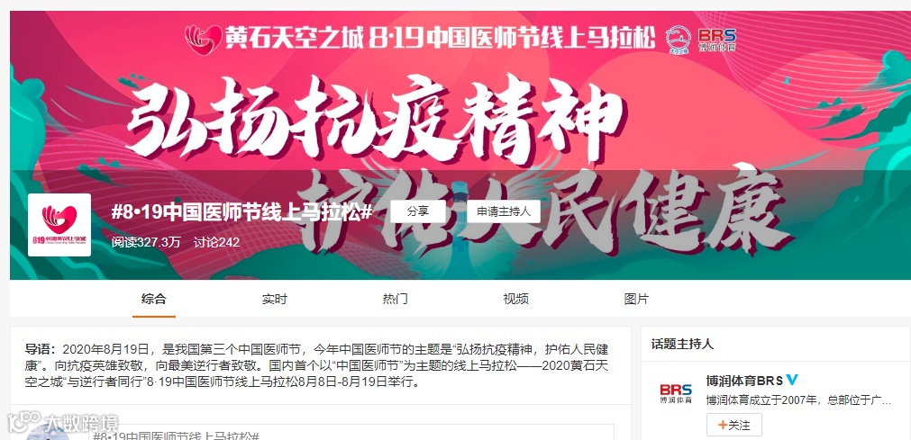 在线上开跑同时,我们在微博开启#8·19中国医师节线上马拉松#话题讨论,微博话题阅读量超过327万,收到无数跑者的留言及祝福。