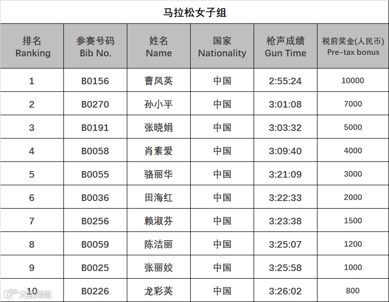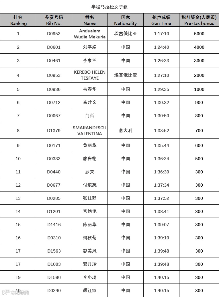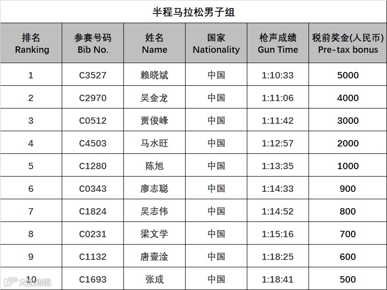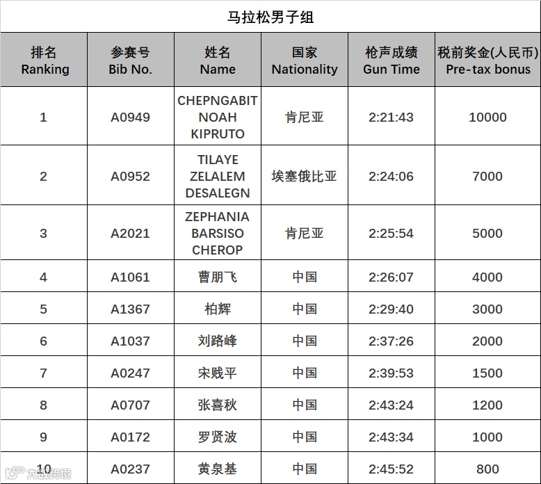 注:此外,上述奖金将按照本次赛事竞赛规程规定,征收20%个人所得税,由河源万绿湖国际马拉松赛组委会代收代缴。