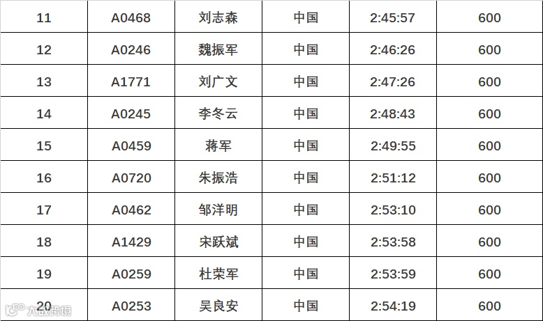 组别:男子马拉松