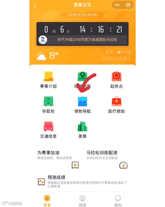 点击主页下方/路线页面右侧“为赛事加油”