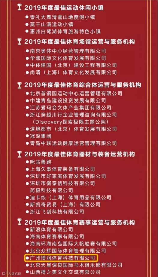 12月10日,第五届SportIN体育产业大会暨体育BANK颁奖盛典,在北京盛大举行。来自国内外政、企、研的专家、学者及产业跨界精英们共聚一堂,共同见证了盛典的圆满召开和2019年体育产业年度大奖的正式揭晓。在此次颁奖盛典中博润体育荣获“2019年度最佳体育赛事运营与服务机构”年度大奖!