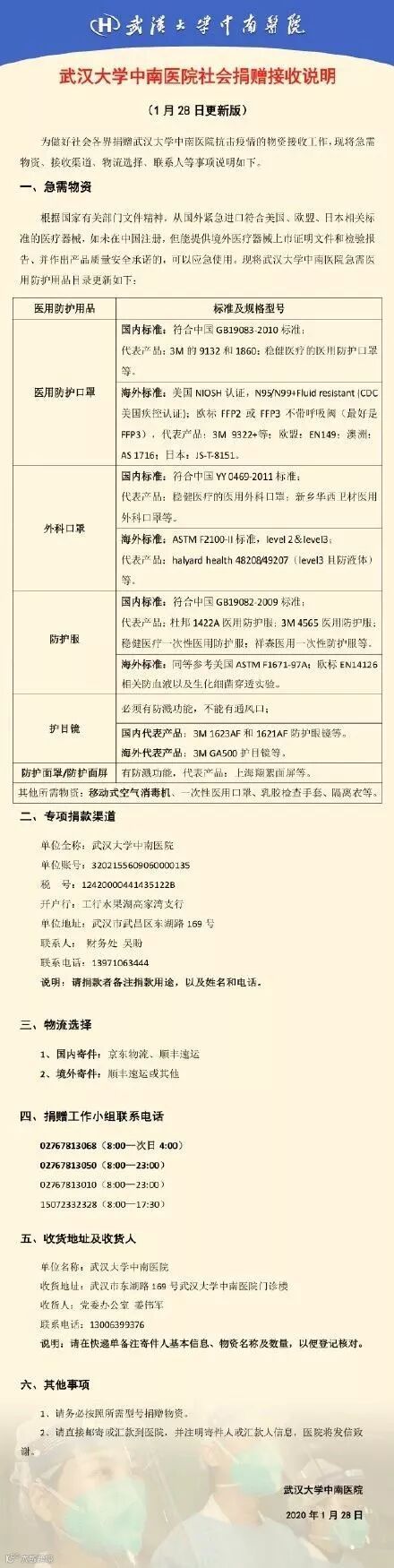 本次募捐善款将全部捐赠予武汉大学中南医院及华中科技大学同济医学院附属同济医院。