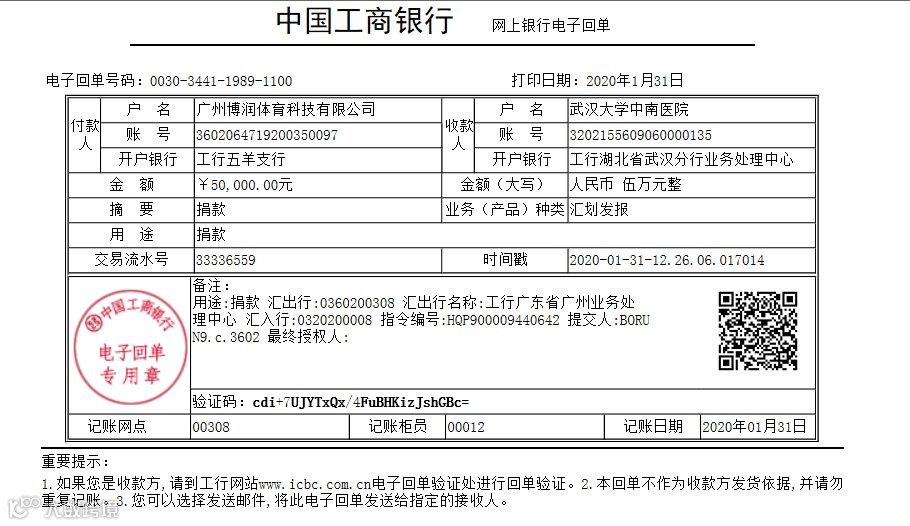 为共同抗击疫情,与湖北人民共同渡过艰难时刻,心怀对疫区同胞及奋战在一线的医务工作者的敬意,博润体育已向武汉大学中南医院及华中科技大学同济医学院附属同济医院捐赠现金10万元(以下两家医院分别捐赠5万元)。