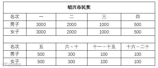 ① 奖励对象:报名截止之前取得绍兴市户籍的男、女选手;