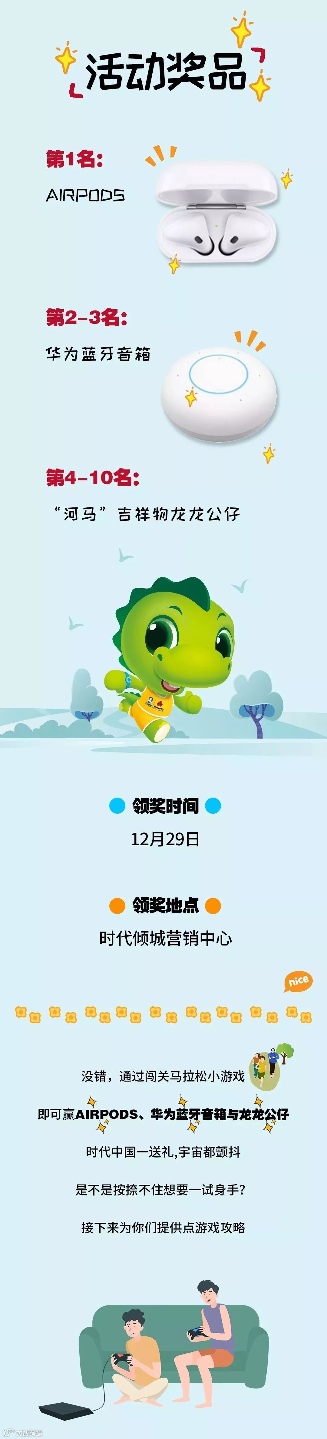 参与“河马”小游戏,游戏得分排名前10名并转发小游戏至朋友圈集满18个赞后截图发至[时代中国河源梅州公司]后台即可获得惊喜大奖!