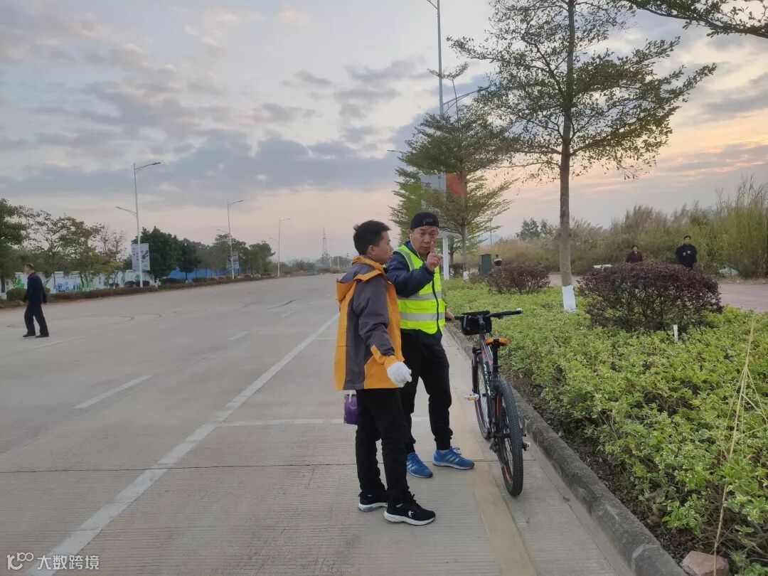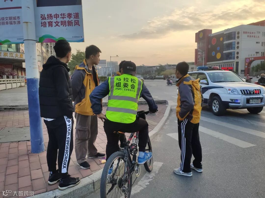 12月13日早上6点半,张老师和赛事组委会丈量小组从河源体育馆出发,沿着沿江东路、东江西路、东江大道、新河大道等路段进行全半程赛道的丈量。