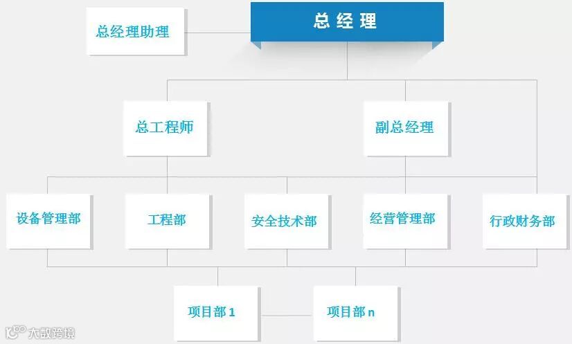 负责施工项目的现场管理,按项目分设项目部,一般设项目经理(负责人)1人、施工员若干人、安全员1人、材料员1人、质量检查员1人、资料员1人、电工1人、下辖各专业班组。