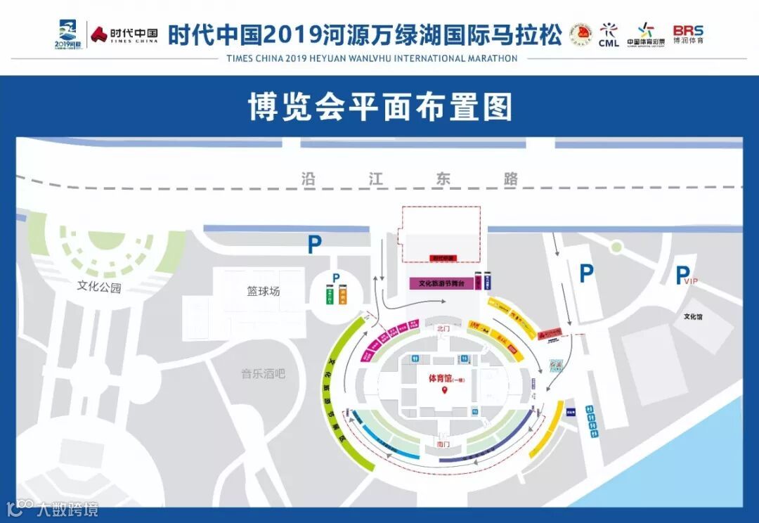 请按图中箭头方向前进,并到对应区域领取参赛物品