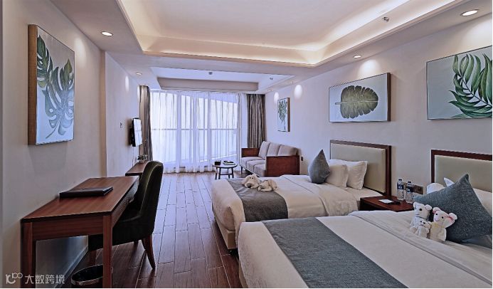 酒店客房米黄色为背景、布艺、实木家居、热带风装饰画、配以暖色射灯,满满的温馨和舒适感,在这里可以尽享欢愉假日。