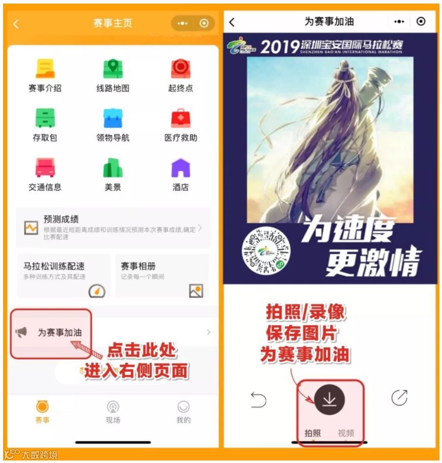 招商蛇口·华侨城2019深圳宝安国际马拉松赛将AI技术带入赛场,记录和捕捉参赛选手的一举一动,获取个人专属完赛视频,重温从开跑到完赛的每个赛事瞬间,同时还可以分享给亲朋好友。