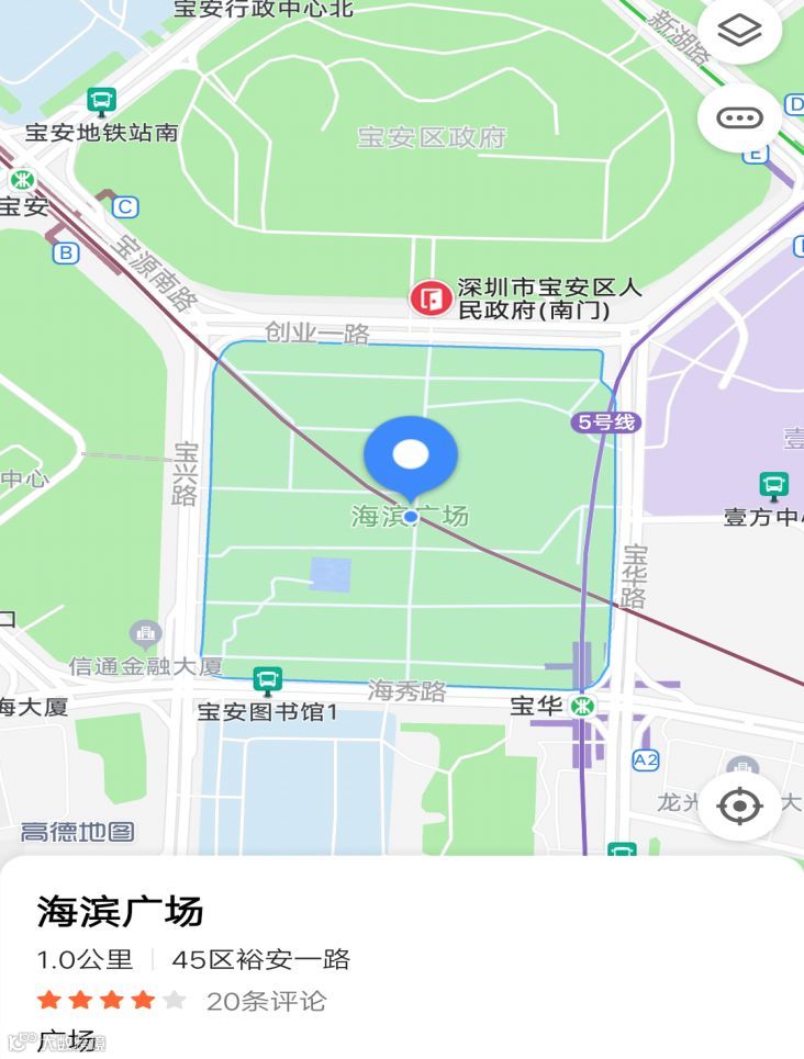 2.深圳宝安国际机场到深圳市宝安区海滨广场(深圳市宝安区海秀路)