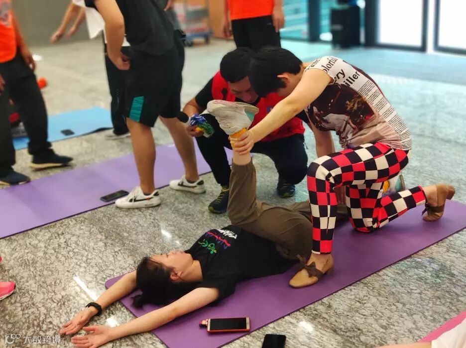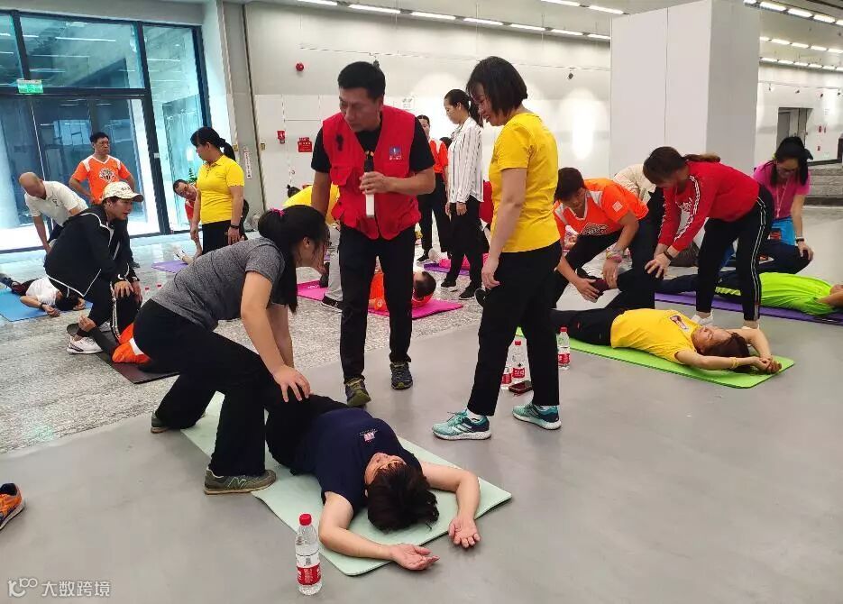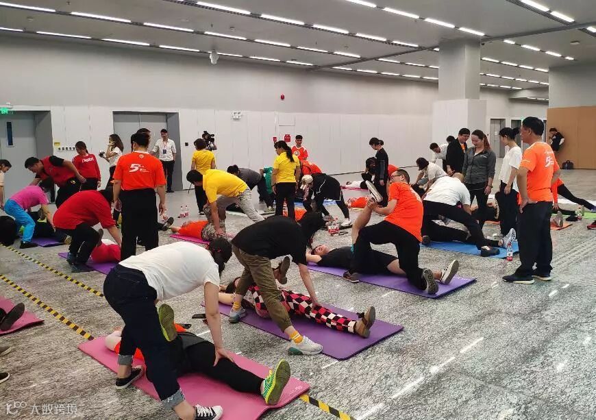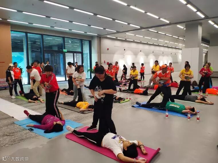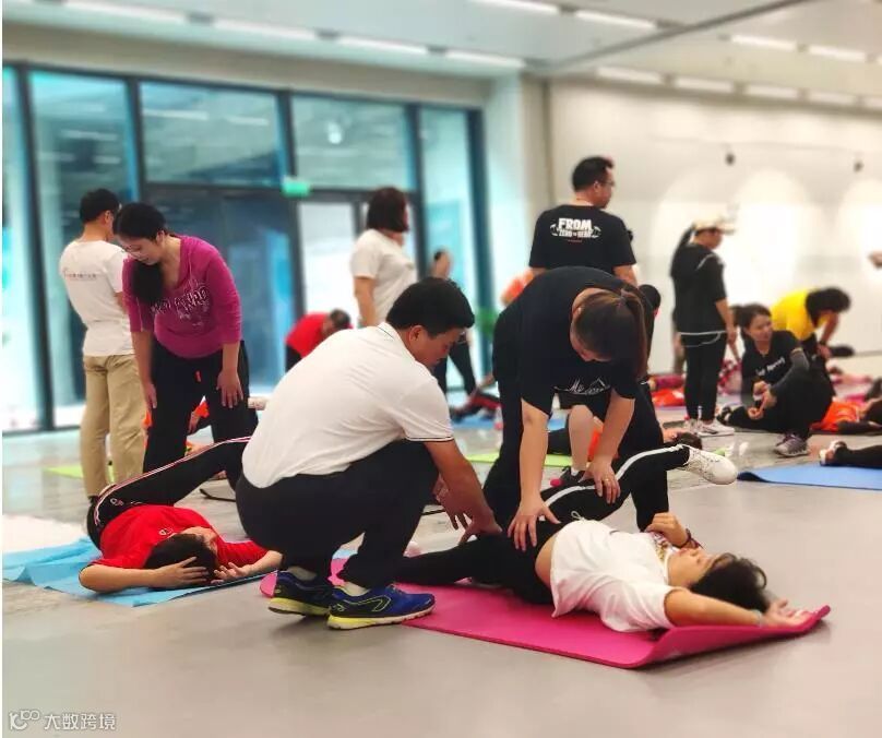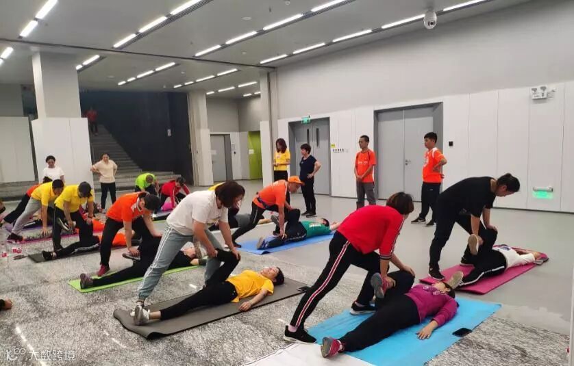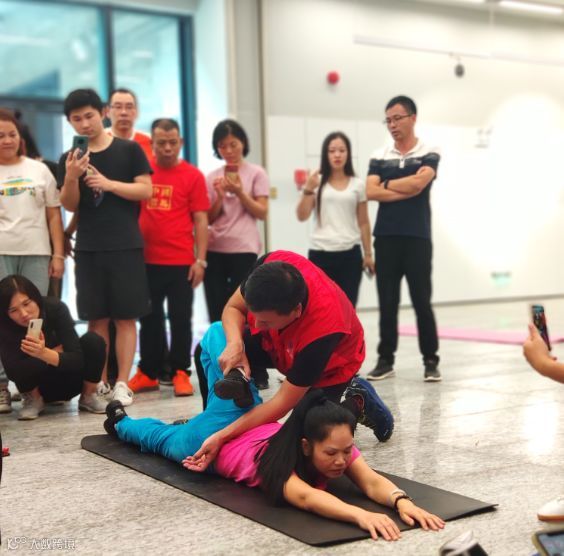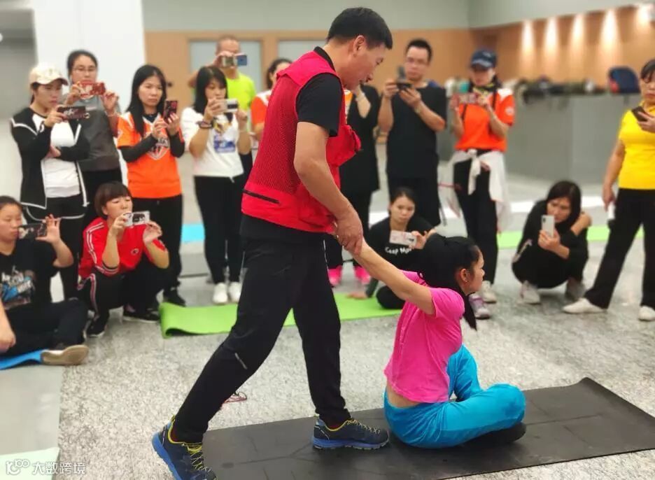 在培训现场,讲师针对马拉松项目赛后拉伸恢复进行了详细的讲解和现场实践。