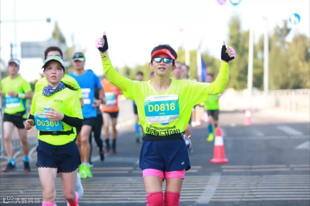 选手们纷纷竖起大拇指为此次马拉松点赞