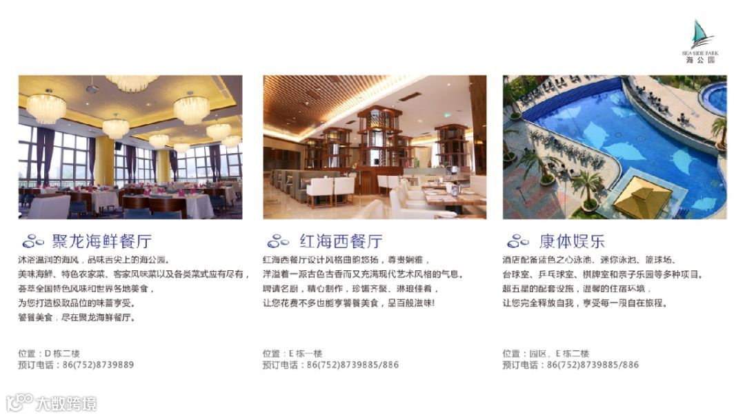 金融街·海公园度假酒店坐拥两公里白色沙滩,前视大海,后坐公园,左右山海一色;以10栋船型活体建筑设计,弧形玻璃幕墙、甲板式阳台成为巽寮湾海岸线上的标志建筑群。以星级标准建设的海公园度假公寓,畅享海湾和河湾双重景观,精心设计的景观最大化的完美户型,让人凭生家的温馨与度假的愉悦,不知不觉中实现旅游与养生的双重体验!