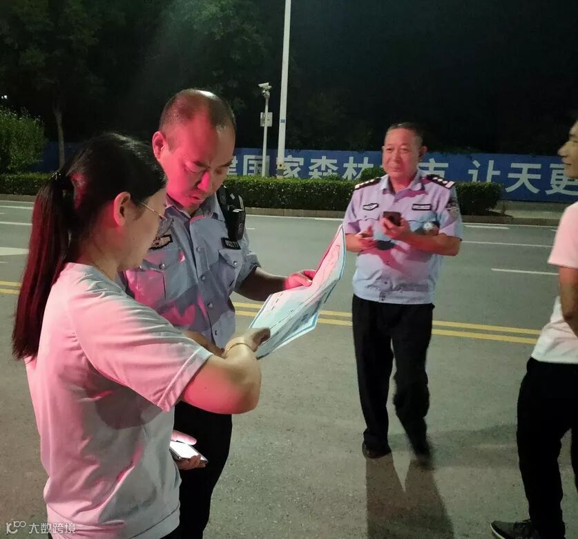 ▲组委会工作人员与公安干警交流赛道丈量安全保障工作