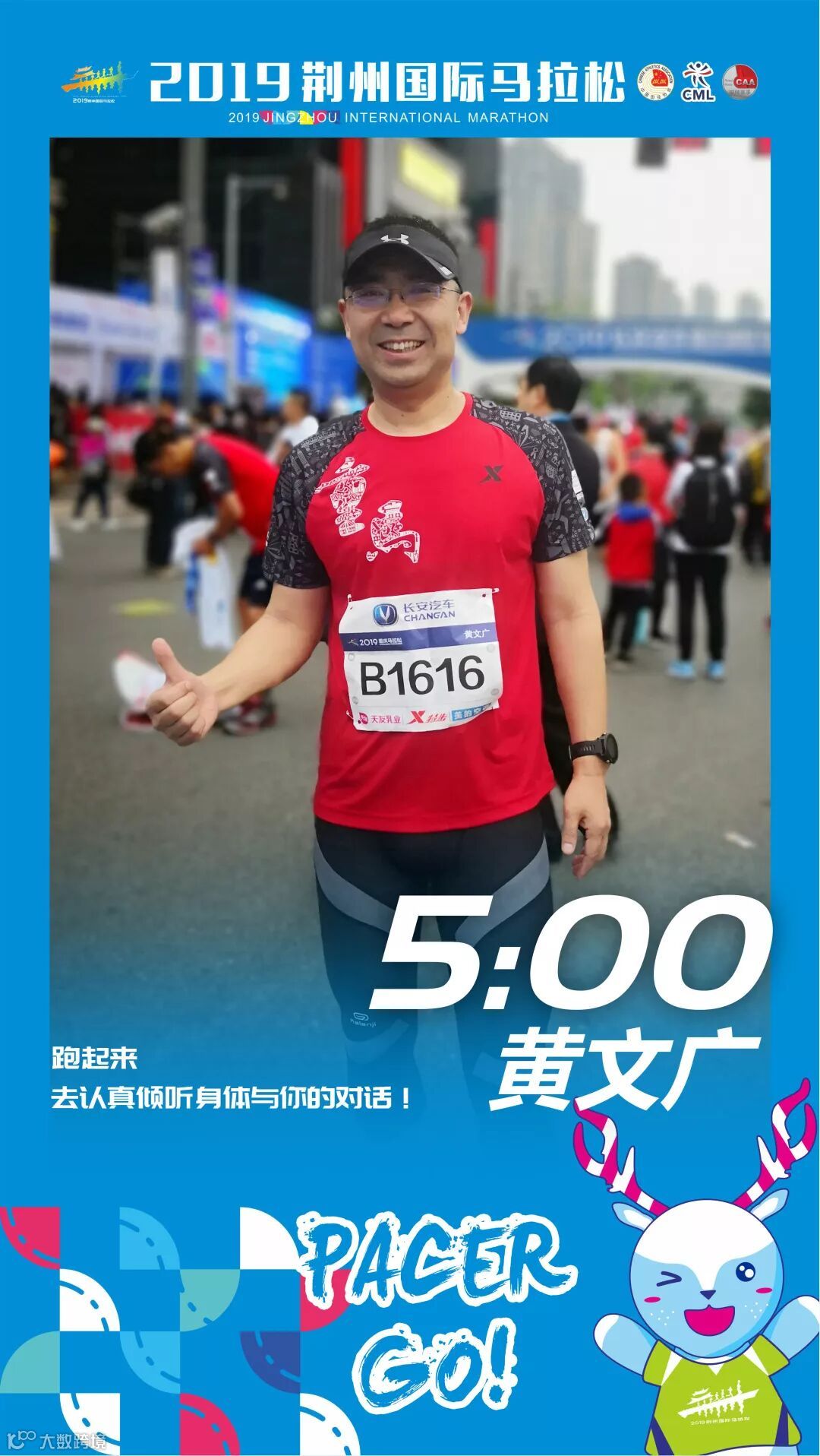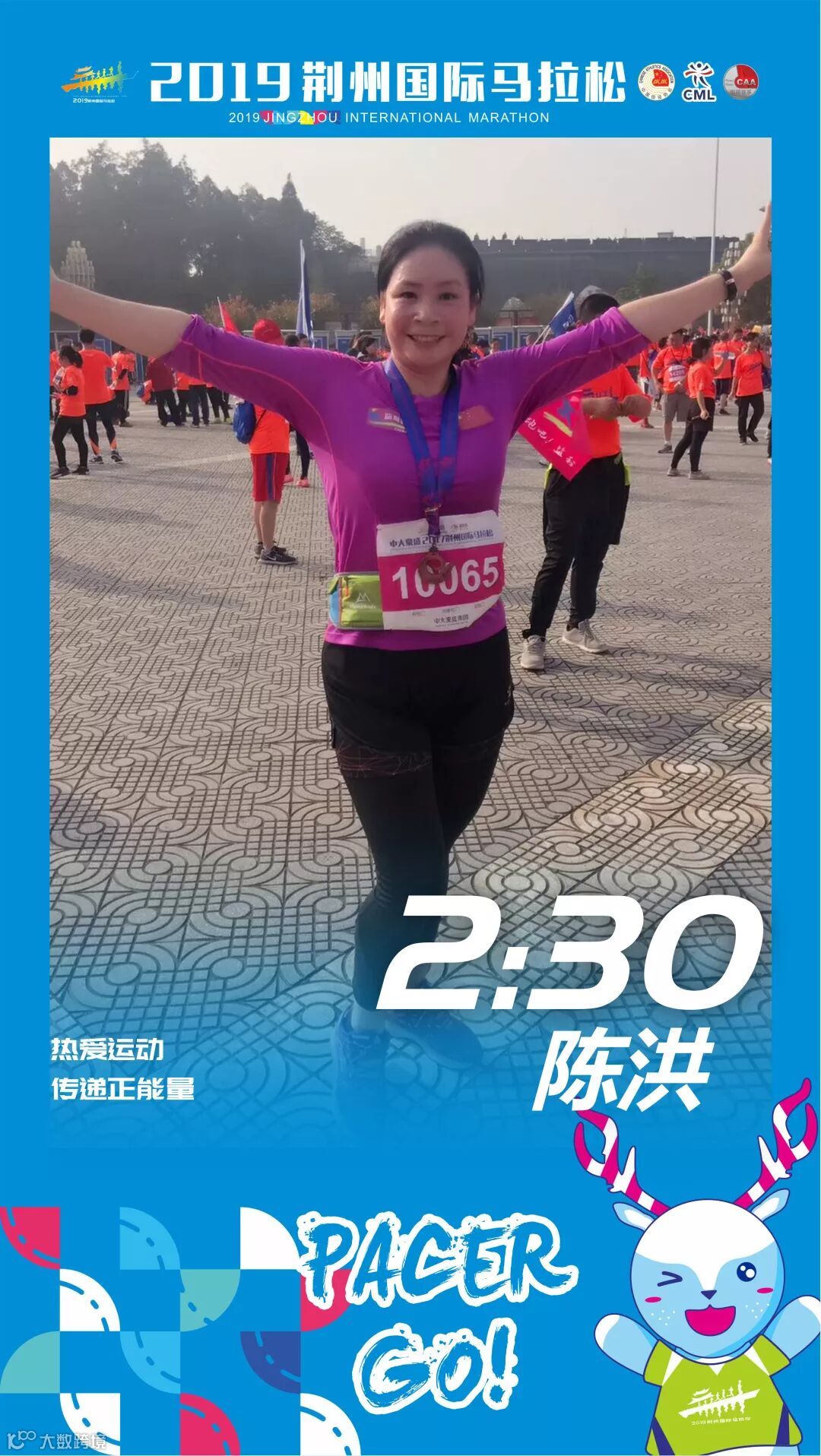 连续三次参加半程马拉松,成绩稳定在2小时10分钟左右。作为一名金融工作者,既有工作中的严谨认真,又有一名跑者的乐观坚持。希望能在家门口的荆马开启配速员新的篇章。