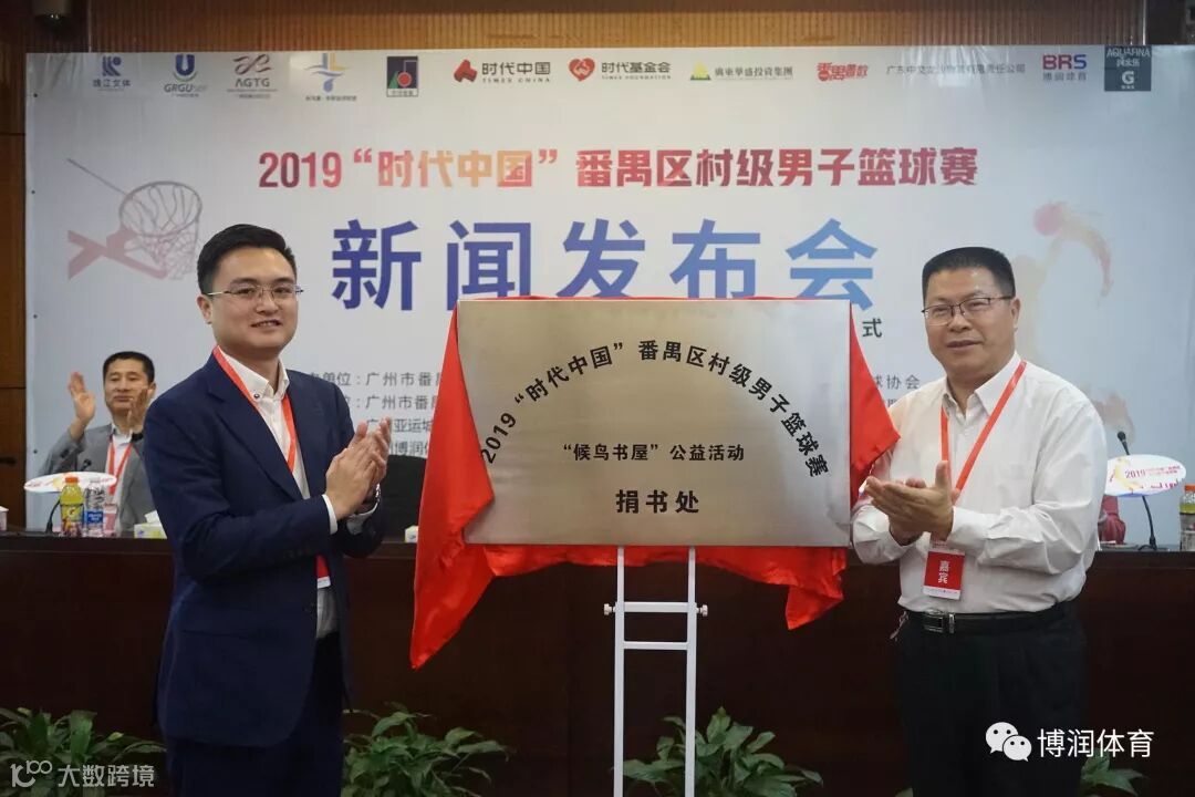 最后,区文化广电旅游体育局何穗鸿局长与“时代中国”拓展与转化事业部总经理林家森进行了2019“时代中国”番禺区村级男子篮球赛“候鸟书屋”捐赠点揭幕仪式 。