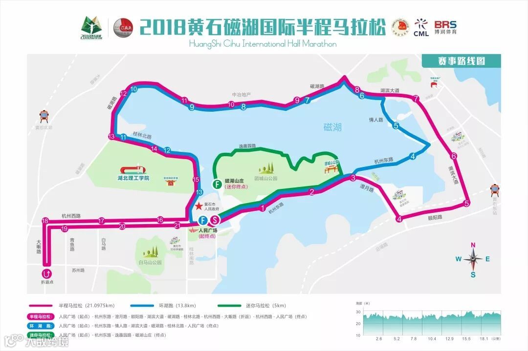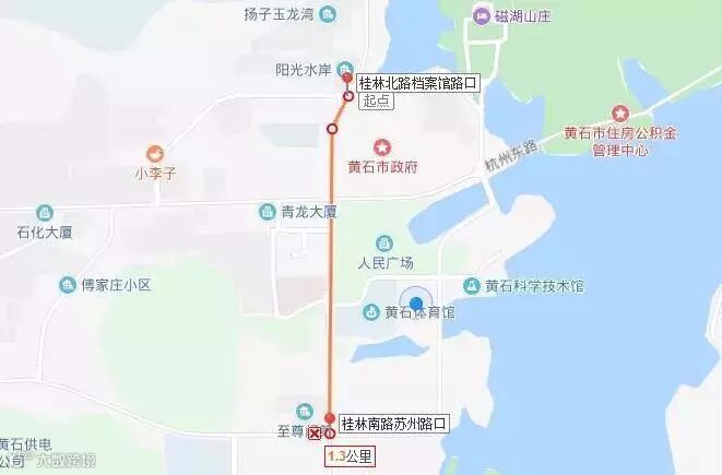 人民广场(起点)--杭州东路--情人路--湖滨大道--磁湖路--桂林北路--人民广场(终点)