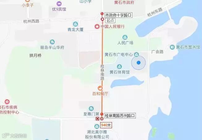3、市政府十字路口至杭州东路磁湖山庄路口(因人民广场北侧搭建、拆除主舞台、起点、终点拱门)