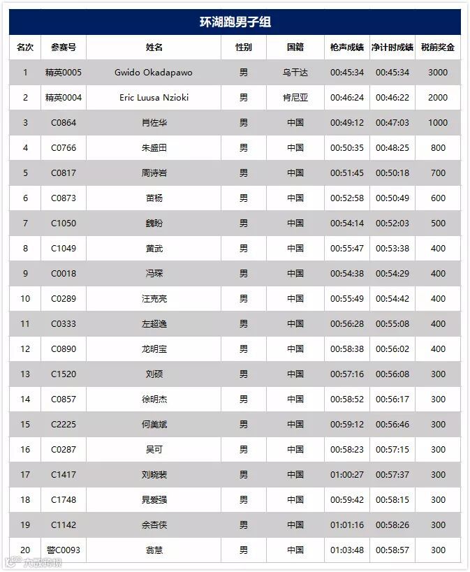 此外,上述奖金将按照本次赛事竞赛规程规定,征收20%个人所得税,由黄石磁湖国际半程马拉松组委会代收代缴。