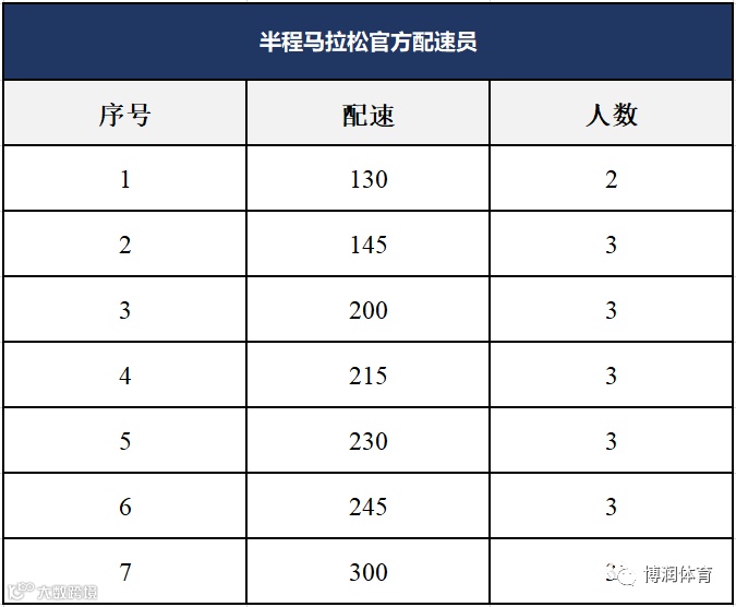 本次赛事,招募半程马拉松官方配速员20人,具体配速分配如下: