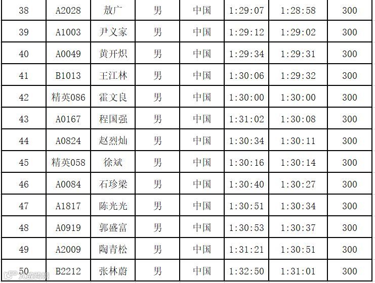 组别:男子马拉松