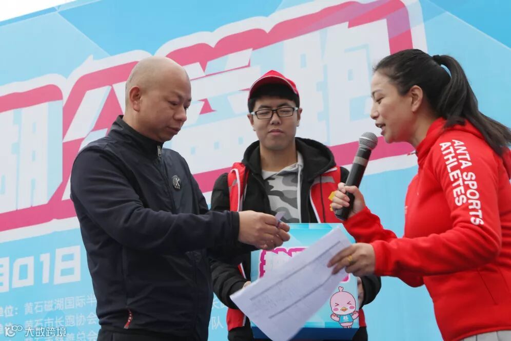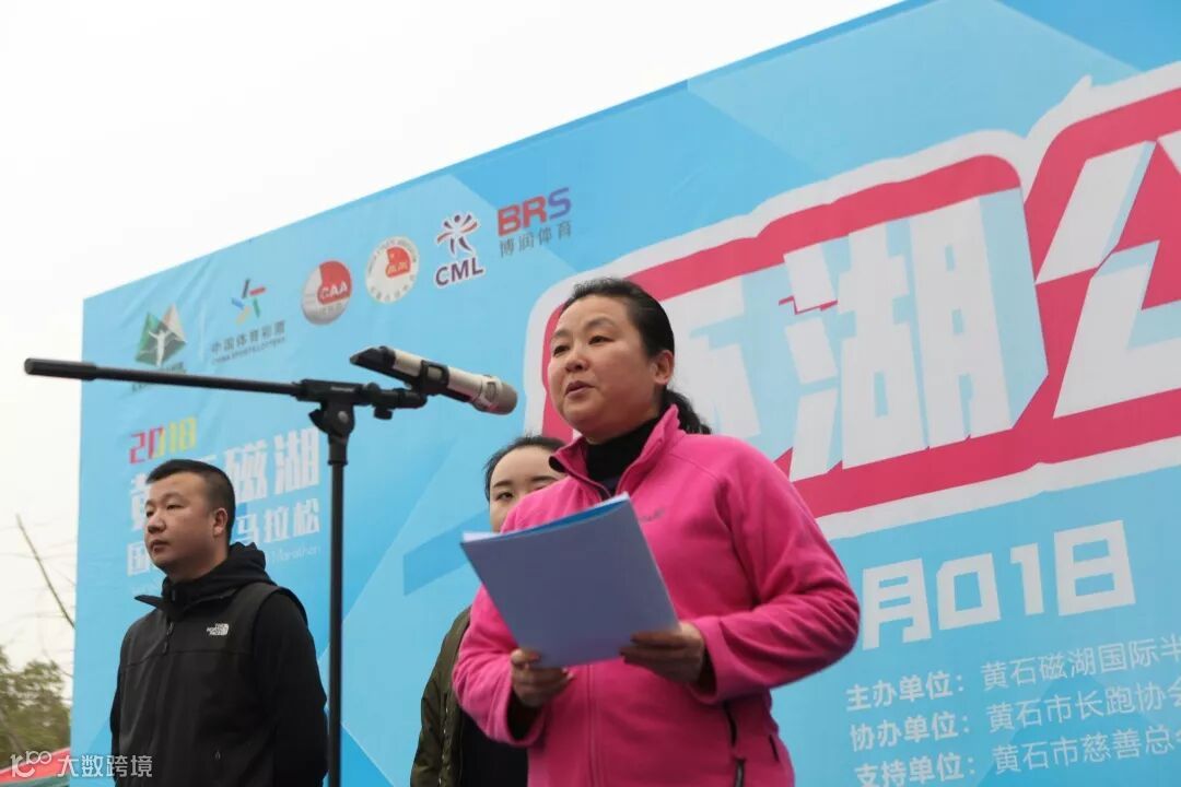 黄石市体育局副局长鲁泳为本次环湖公益跑致辞