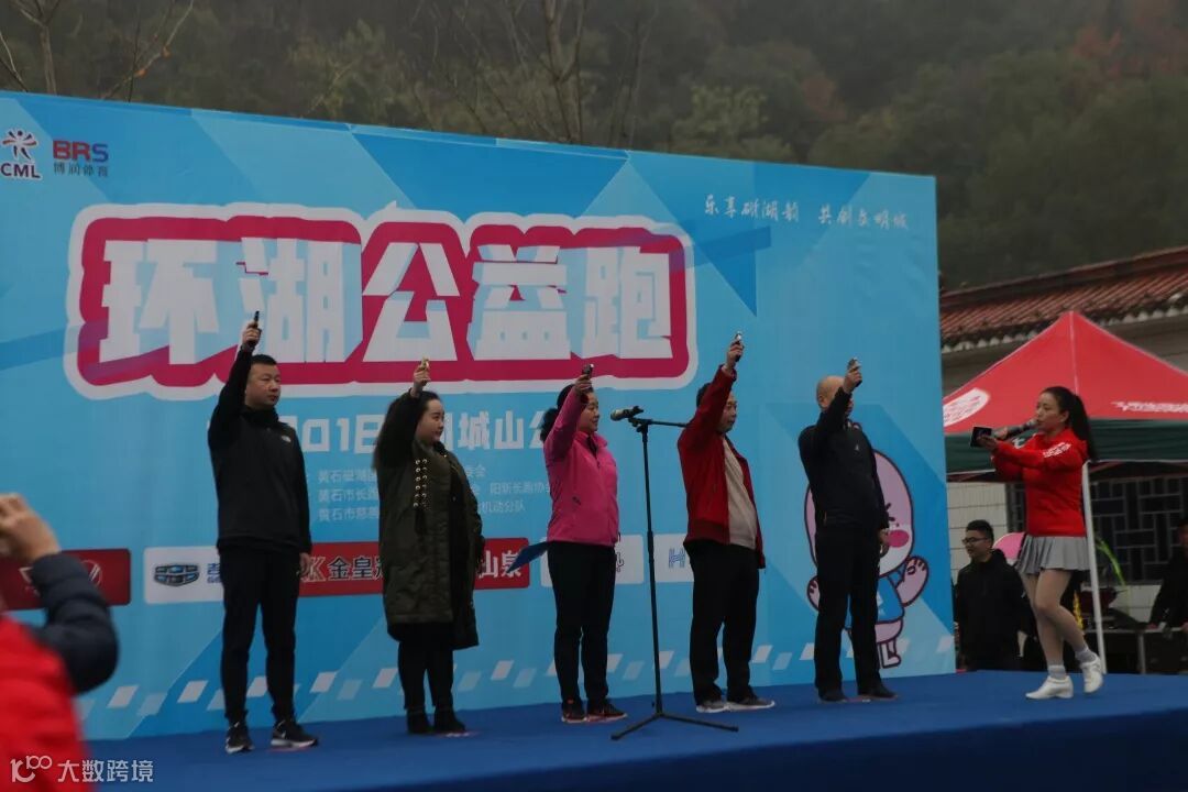 黄石市体育局副局长鲁泳、黄石市体育局群体科科长 胡育松、黄石市体育局社团科科长吕琳、金皇冠总经理张红安、农夫山泉黄石办事处经理黄文杰为本次环湖公益跑开枪发令。