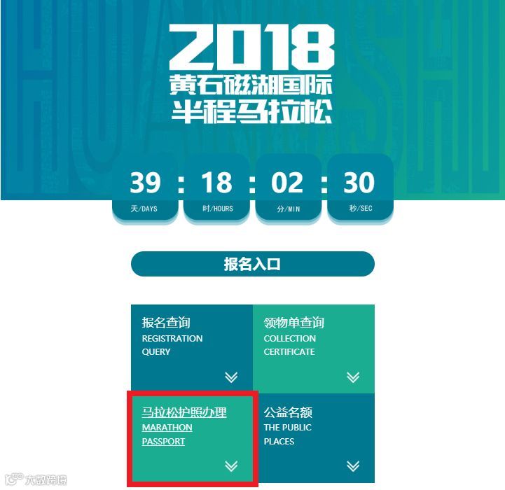登陆“黄石磁湖国际半程马拉松”首页,点击马拉松护照办理;