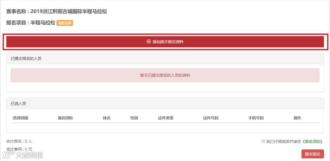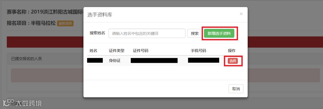 已有选手信息的点击选择,没有选手信息的点击新增选手资料