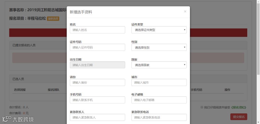 填写新增选手个人资料,如姓名、证件信息、联系方式等信息后点击保存(所有项均为必填项)