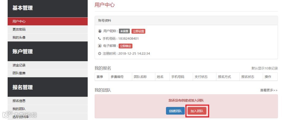 没有加入团队的选手,找领队拿到团队ID后登陆个人账号进入团报页面,点击加入团队,进行赛事报名