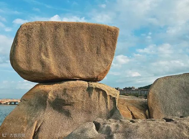 这是一个天然的奇石公园,形成于亿万年前,每一块都是大自然鬼斧神工的杰作。其中一块名叫“风涛摧磨”的风动石,状若石磨,因“奇、险、摇”而被载入《中国地理之最》杂志。在这里,奇石形体的抽象结构、碧浪潮汐沿岸流的节律与和谐、海浪亲吻滋润沙滩留下的线纹姿式,“最能表现吾人身心的情调与律动”!