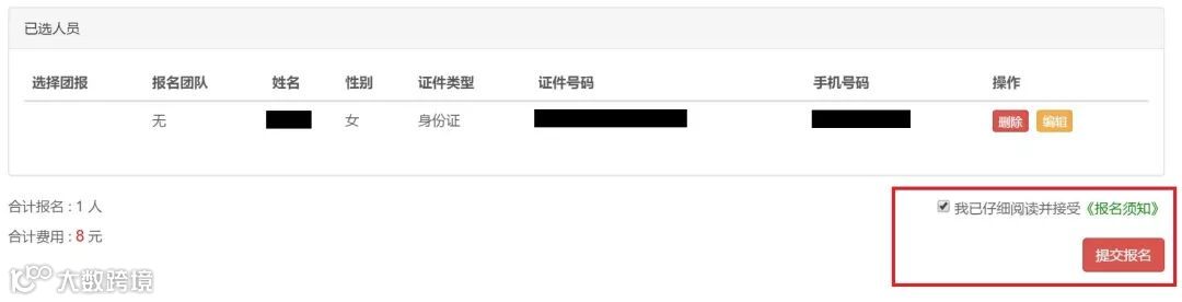 点击提交报名