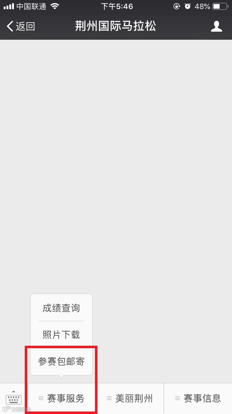 点击赛事服务 -- 参赛包邮寄
