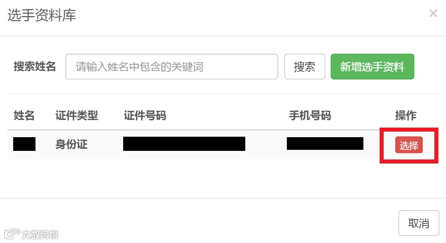 选择自己的选手资料