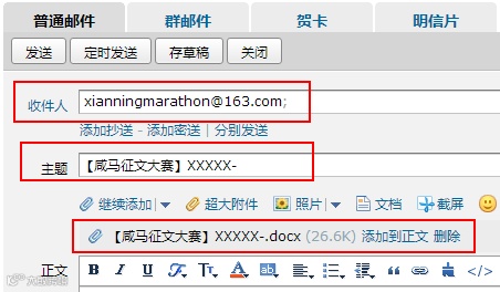 ·发送到邮箱:xianningmarathon@163.com