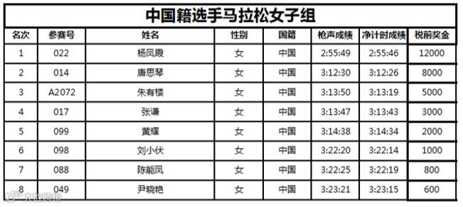 中国籍选手马拉松女子组