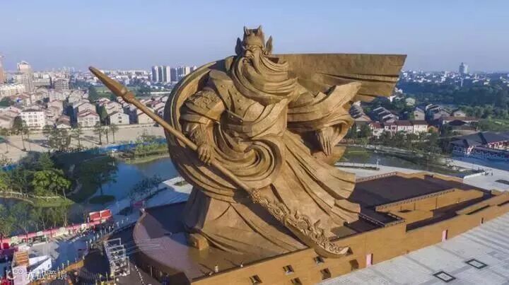 关公义园位于荆州古城东南侧,以“义”为主题,园内矗立着世界最大体量关公青铜雕像,是世界和平艺术家、当代艺术大师、“福娃之父”韩美林的收山之作。雕像总高58米,寓意关公一生度过了58个春秋,重1200余吨,内部采用钢构固定,外贴4000多片青铜片。关公圣像双目微醺,不怒而威,侧身迎风而立,右手拖一把70米长大刀,整个身躯如山峦般屹立。
