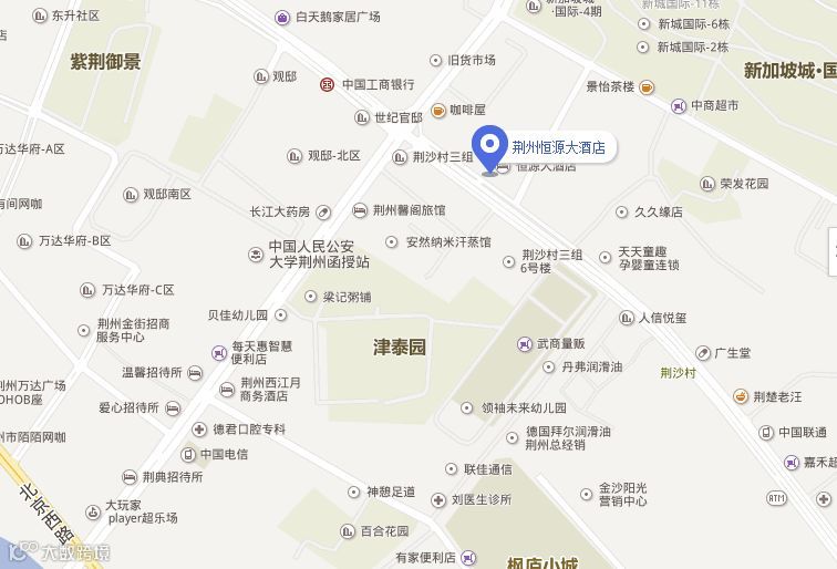 荆州恒源大酒店 距离 荆州体育中心(起点)距离5.5公里, 车程约11分钟