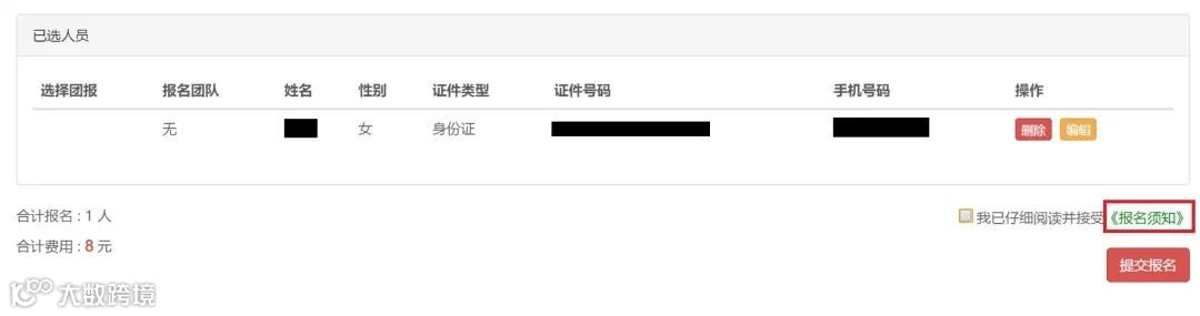 点击提交报名