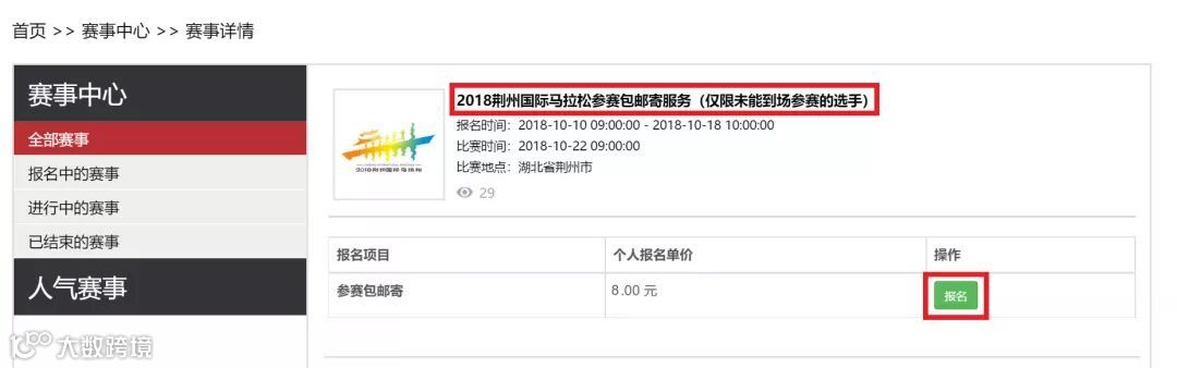 为了方便10月21日因个人原因未能到场参加中大豪盛2018荆州国际马拉松比赛的参赛选手,荆马组委会特别推出参赛包邮寄服务。