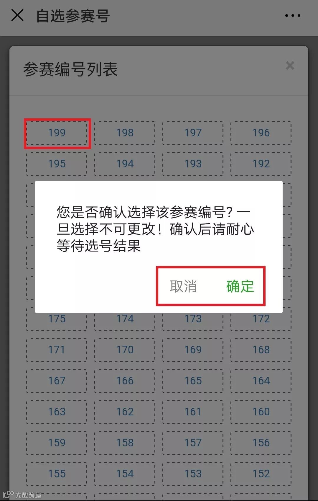 步骤四:选择自己心仪的号码,点击确定